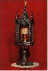 A igreja e o sacrário da Catedral de Milão foram saqueados e o ostensório de prata foi roubado e colocado em uma carruagem, e levado a Turim. Alí o cavalo parou diante da igreja de S.Silvestre, o ostensório caiu no chão, e levantou-se pairando no ar, com grande esplendor, como o Sol. O bispo Ludovico Romagnano foi chamado. O ostensório caiu no chão e a hóstia ficou pairando no ar. Desceu em seguida dentro de um cálice seguro pelo bispo.